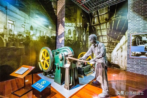 铜元局曾是老重庆著名的机器制造业企业,展馆内摆放着旧日工厂的鳄鱼式剪刀机,配合工人操作的雕塑和生产车间旧景的背景板,仿佛能看到彼时工厂繁忙的工作景象。