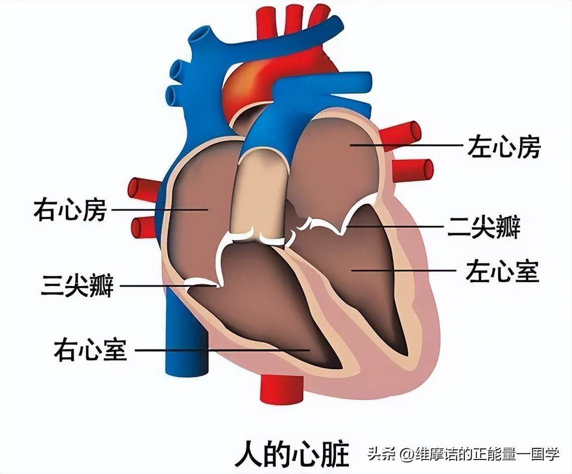 这张图也算科普图,我们初中时就学到过。现在我们来聊聊八卦和五脏六腑是怎么对应的呢。我们先来聊聊“心”和“小肠”为什么是对应离卦呢。首先我们先从心的结构说起,这在初中课本中就见过,心脏是一中空的肌性器官,如下图心脏有四个腔,分为左心房,左心室,右心房,右心室。心脏是推动血液流动,向器官、组织提供充足的血流量,以供应氧和各种营养物质,并带走代谢的终产物(如二氧化碳、尿素和尿酸等),使细胞维持正常的代谢和功能。心脏的象就对应离卦的象,中间是虚的,空的。心脏时刻不停得运动,会产生大量的热量,做的功是很大的,我们在日常生活中上火了,会说心火旺。而离卦代表火卦,火红的,热量,漂亮的,而我们心脏也具有这种特性。而“心”和“小肠”是相表里的关系,所以“小肠”也用离卦表示。离卦五行属火。