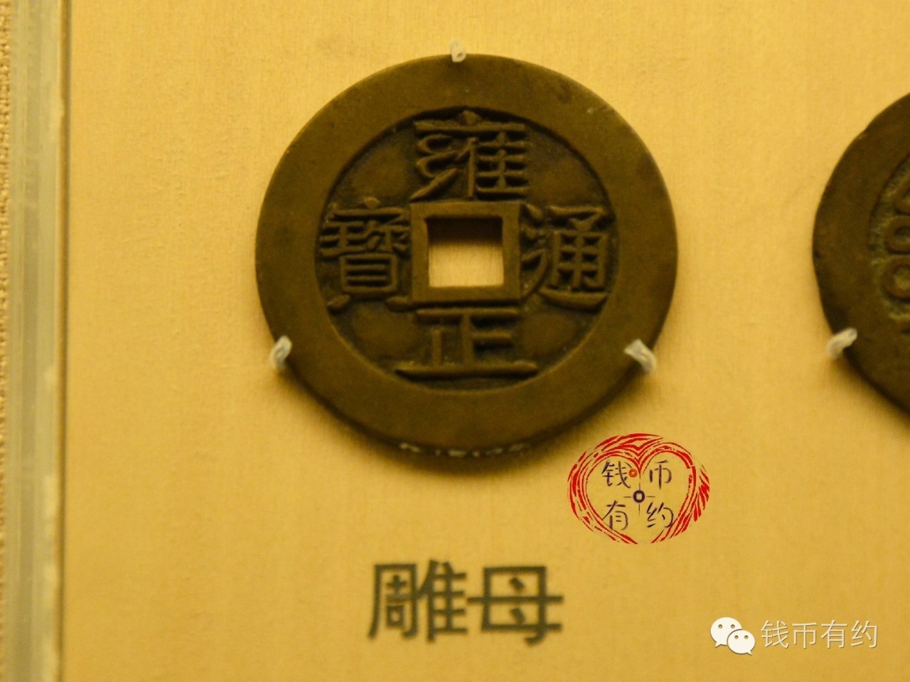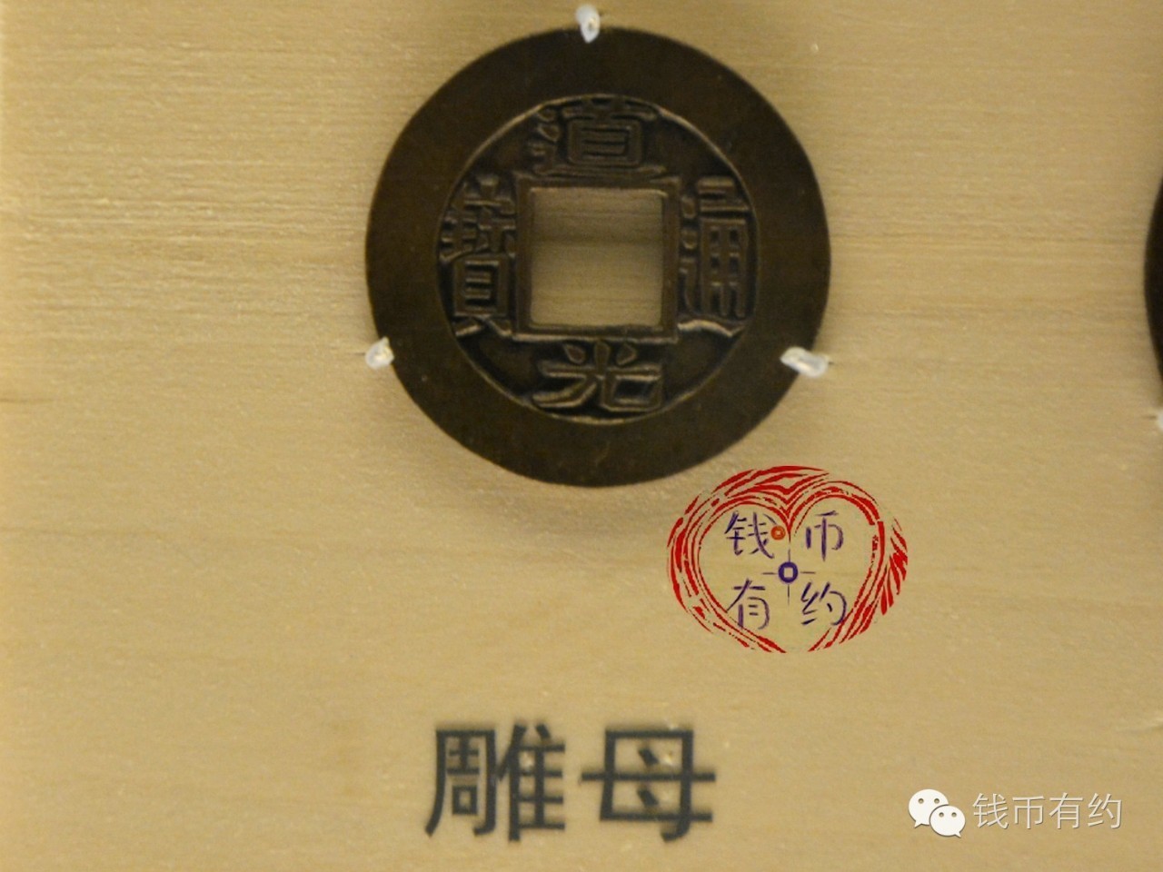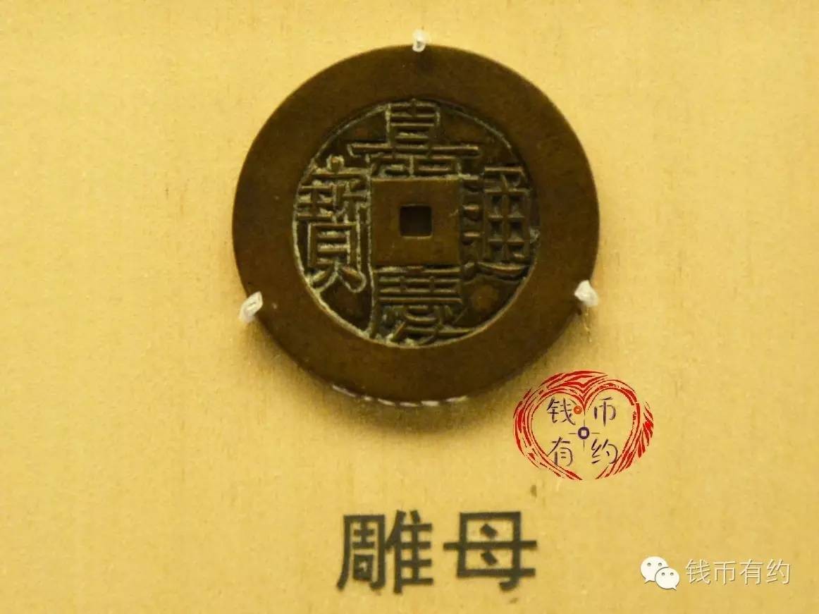雕母又称祖钱,是翻砂铸币时期的母本,每每铸新钱,钱局工匠先取净铜一块,雕琢成钱币的模样,称之为“雕母”。用雕母翻铸出的钱币,经过打磨边道,修整穿口等工序,我们称之为“母钱”,母钱是用来翻铸子钱的。用雕母翻铸出的钱币,经过特殊的工序,一般是打磨边道和表面,我们称之为“样钱”,用于给皇帝审核的,称为”进呈样钱”,由中央颁发给地方的称之为“部颁样钱”。