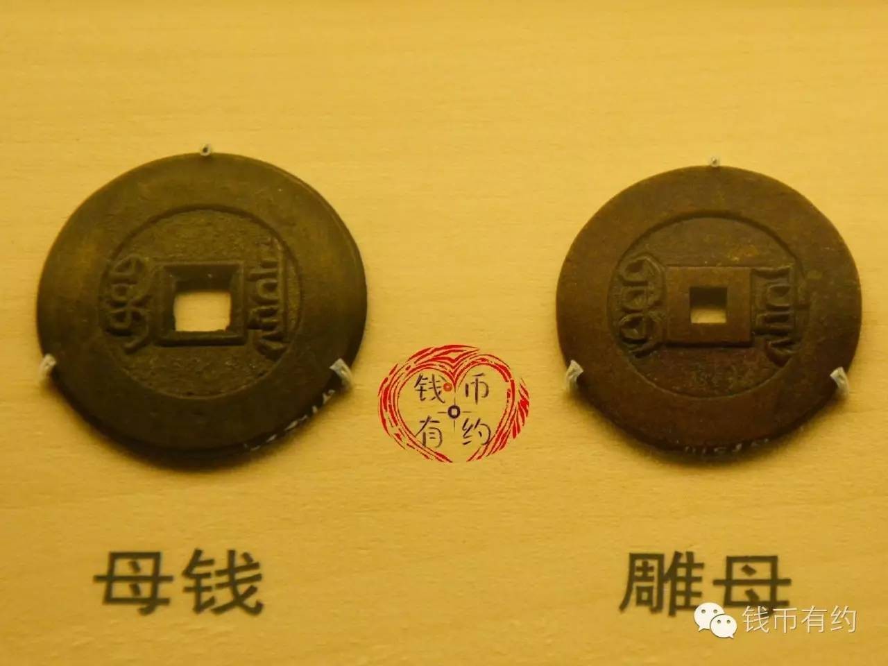 母钱是由雕母翻砂铸造出来的,直径小于雕母,字口仍保留雕母的特征,一般为鱼脊边,穿口光洁,用母钱翻铸出来的钱币,称之为“子钱”。