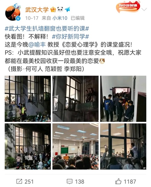 翻窗也要去听?武汉大学这堂爆满的课堂装不下同学们对知(恋)识(爱)的向往
