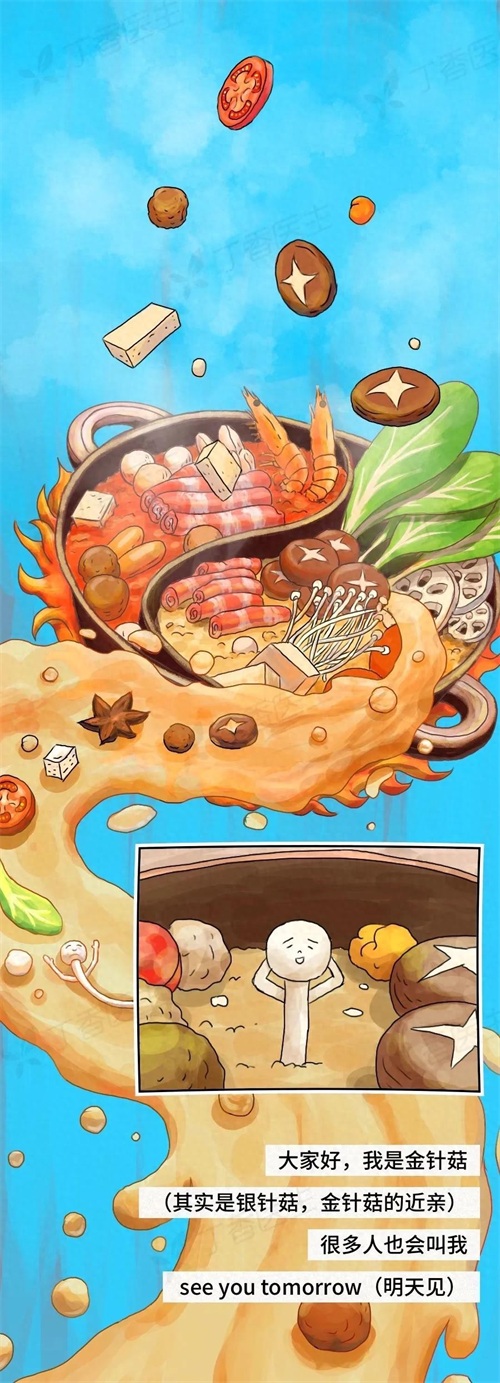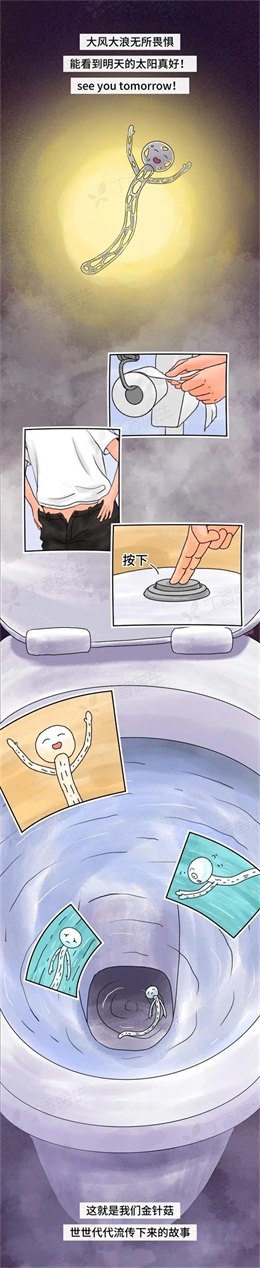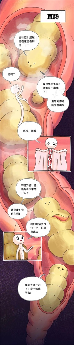 在这里因为金针菇坚硬的外壳一直无法被消化,所以金针菇也会被完整地排泄出来,被称之为see you tomorrow!