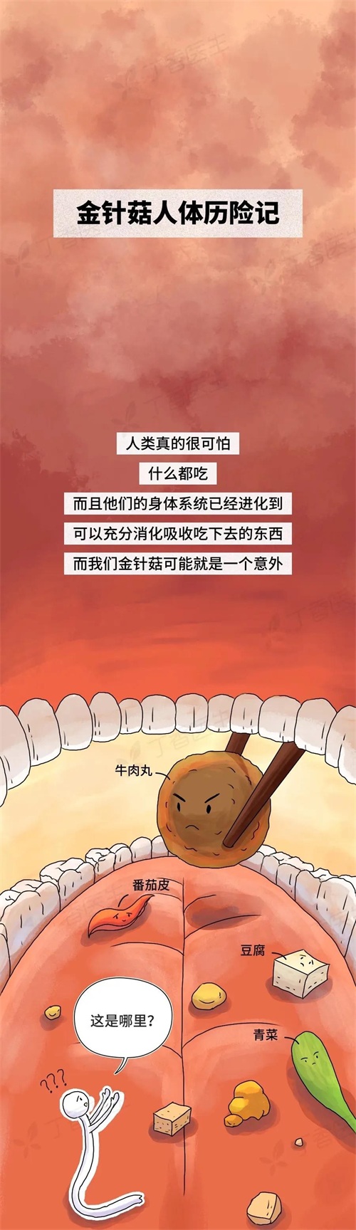 人类真的很可怕什么都吃,而且他们的身体系统已经进化到可以充分消化吸收吃下去的东西而金针菇可能就是一个意外。