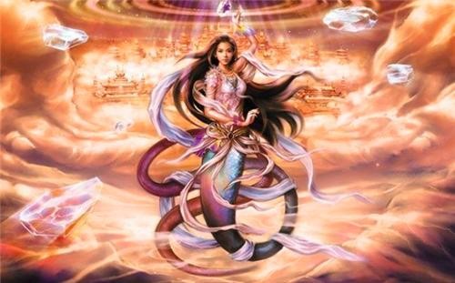 她便是女娲,在中国上古神话中有“女娲造人”、“女娲补天”的故事,因此也为创世女神、大地之母。我国先秦时期的《山海经》以及《楚辞》是女娲神话的第一批古书籍记载,不过在殷商时期,甲骨文对女娲已有记载。