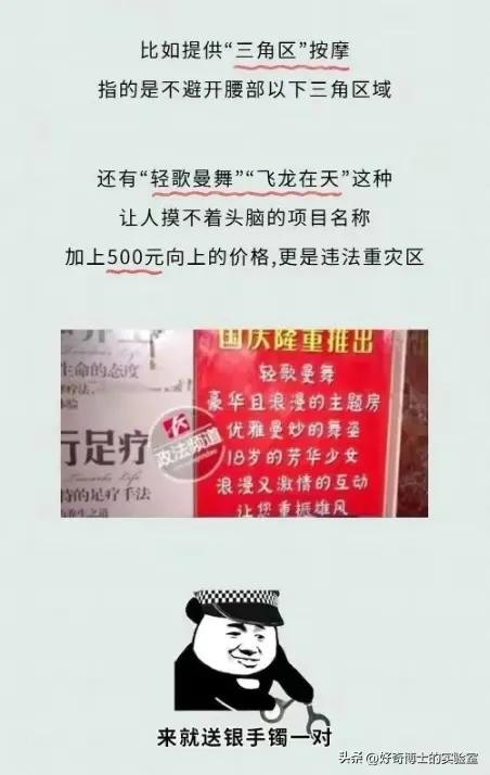 最近按摩店里出现了很多怪象,许多看似正经的按摩店,竟然也被警方查出了涉嫌嫖娼的行为,在这里,小编也想提醒大家,出门在外一定要保护好自身的安全,同时也要切记抵制嫖娼,人人有责。