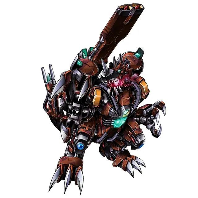 金属巨龙兽又名“机械巨龙兽”,是改造型完全体的数码宝贝。一心想要获取更强的力量,就算付出任何代价也愿意的数码兽,自愿被科技改造。其周身都被复杂机械零件所覆盖着,只能从外表上看出是恐龙的形态。经过科技改造后,其身躯已经变成可以反弹一切攻击的存在,还有着极为强力的下颚作为自己的攻击武器。