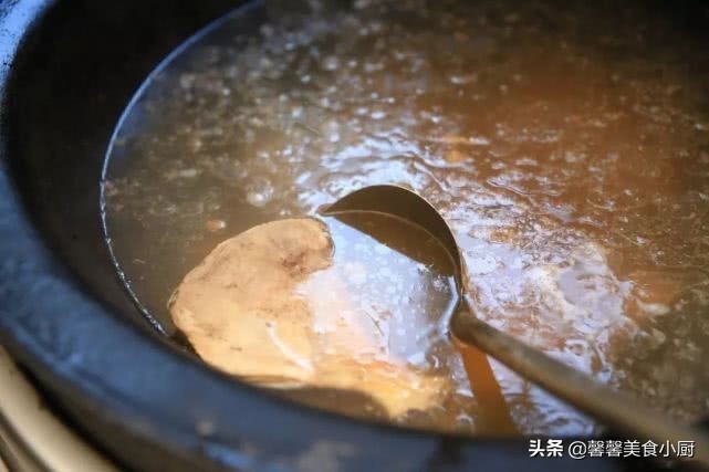 焖肉浇头是块“硬膘大精头”,竟然还“过桥”(装在小盆里),浇头挺括,汤宽面轻,散发出阵阵油香。细细观看,焖肉的精肉上端还含有三段脆骨,那圆柱状脆骨光亮透彻,被包裹在淡红色肉中,如同白玉。
