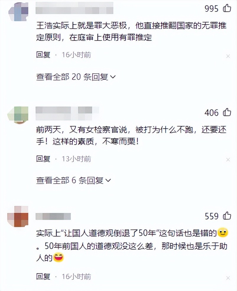 在矛盾案件中,法官王浩不仅未能充分调查案件事实,而且口无遮拦,说出了在道德上难以接受的言论。这一言论在当时社会上产生了恶劣影响: