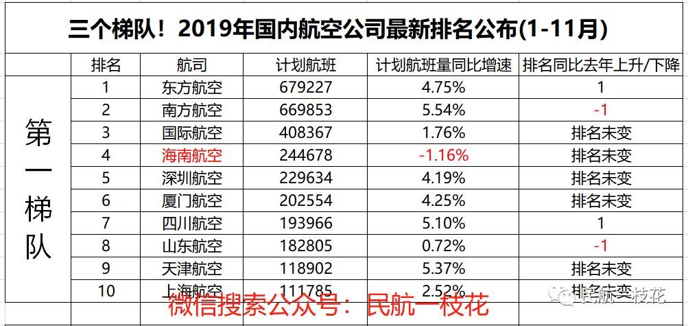 今年8月份的时候,一枝花依据各航司的计划航班量,发布了1-6月的国内航司排名——《三个梯队!2019年国内航空公司最新排名公布》(点击这个标题即可查看)。
