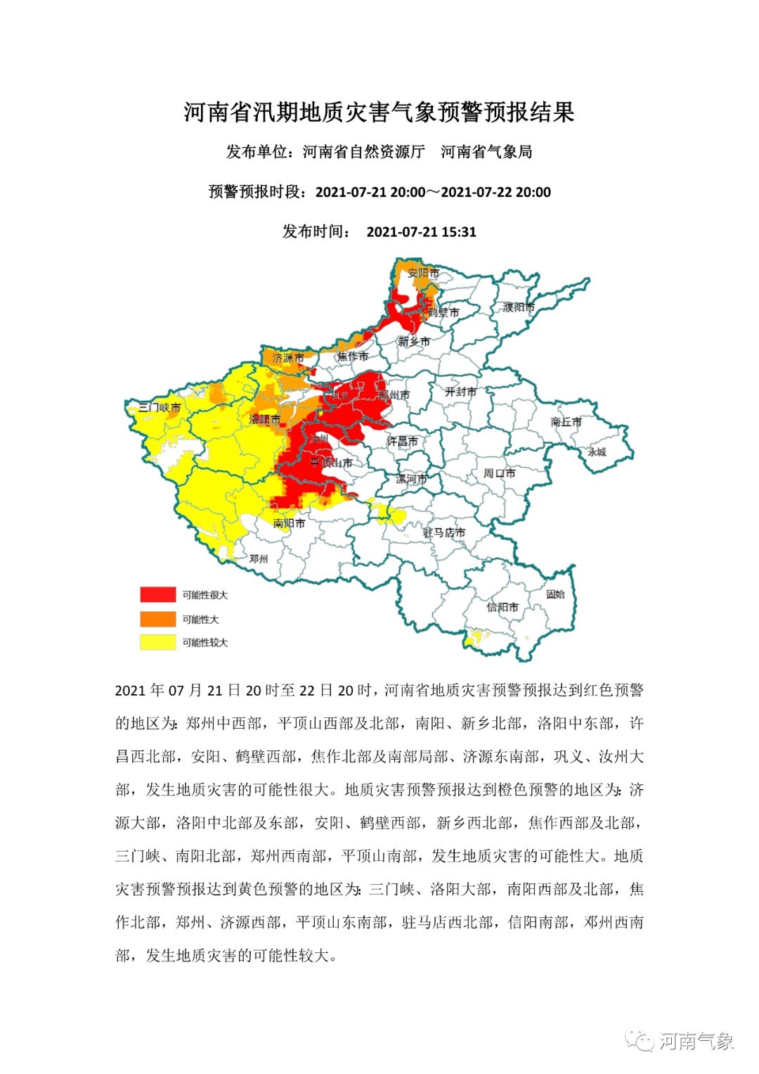 河南省地质灾害气象预警预报