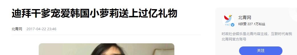 北青网,2017-04-22,《迪拜干爹宠爱韩国小萝莉送上过亿礼物》