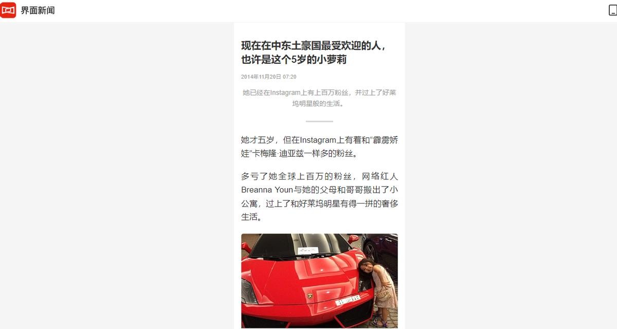 界面新闻,2014年11月20日,《现在在中东土豪国最受欢迎的人,也许是这个5岁的小萝莉》
