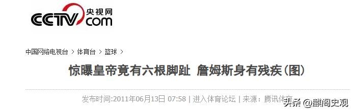 央视网2011-06-13《惊曝皇帝竟有六根脚趾 詹姆斯身有残疾(图)》