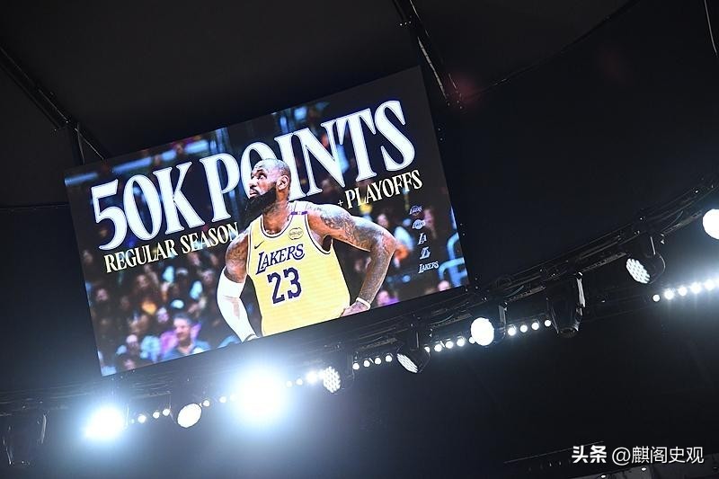 2025年3月5日,詹姆斯常规赛的总得分突破5万分,位列历史第一,40岁的他出场33分钟,砍下了全队最高的34分,整体状态丝毫不减。