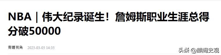 青瞳视角2025-03-05《NBA|伟大纪录诞生!詹姆斯职业生涯总得分破50000》