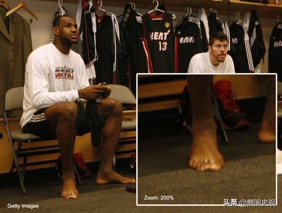 在2011年詹姆斯在热火队效力时,有记者拍到了詹姆斯右脚上的一张照片,照片中显示詹姆斯惊人有六根脚趾,而且他的脚趾也已经出现了扭曲的现象。