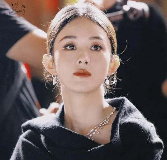 颈部的珍珠项链显得她的脖子格外修长和白皙,减龄的高丸子头和耳朵上的金色耳饰相互映衬,整个人透露出无法言说的贵气。