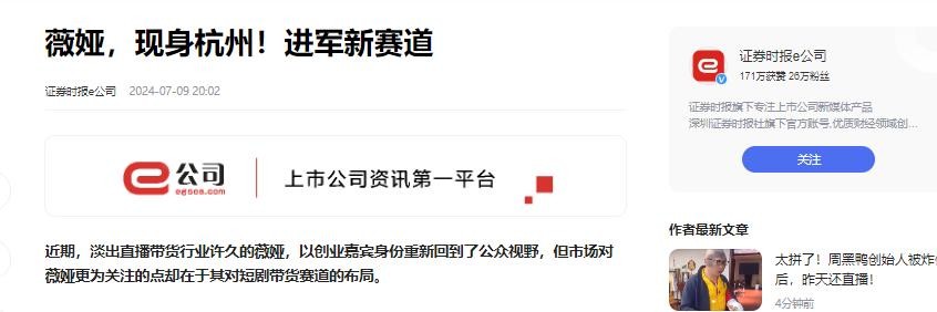 可是薇娅的公司不仅没有因此一败涂地,更没有一蹶不振,反而找到了新的赛道,将公司的发展道路越走越宽。