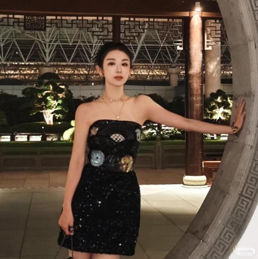 薇娅身穿黑色抹胸裙子
