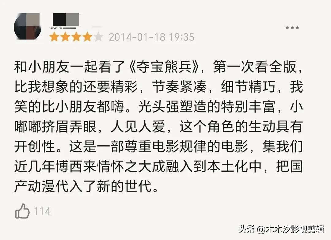 影评:和小朋友一起看了《夺宝熊兵》,第一次看全版,比我想象的还要精彩。