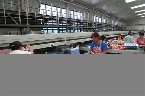 在上戈镇超越农业有限公司果库车间,工人正在分拣、包装苹果。李峰 摄