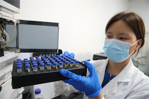 洛阳蓝斯利科技有限公司技术人员正在进行甘草提取物烘干和实验分析。李峰 摄