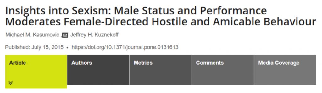 对性别歧视的洞察:男性地位和表现缓和了女性主导的敌对和友好行为