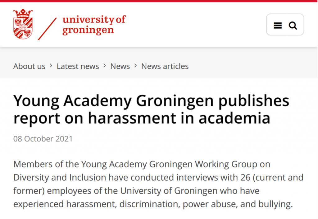 荷兰学术界的骚扰:表现,促进因素,影响和解决方案