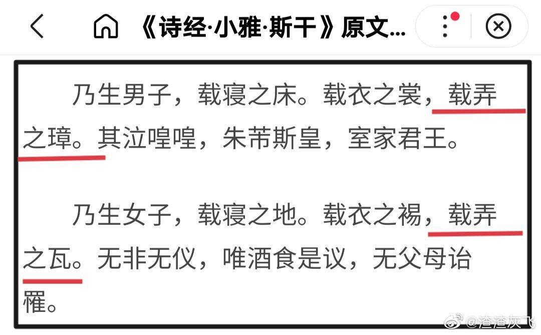 古人重男轻女的思想也用玉瓦作比喻。将生儿子称作“弄璋之喜”,生女儿称作“弄瓦之喜”。“弄璋”与“弄瓦"之说最早见于《诗经》。