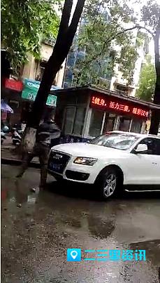 奥迪车主表示,他当时下车找快递小哥交涉,因为自己坚持报案,快递小哥听了后又开始砸车。