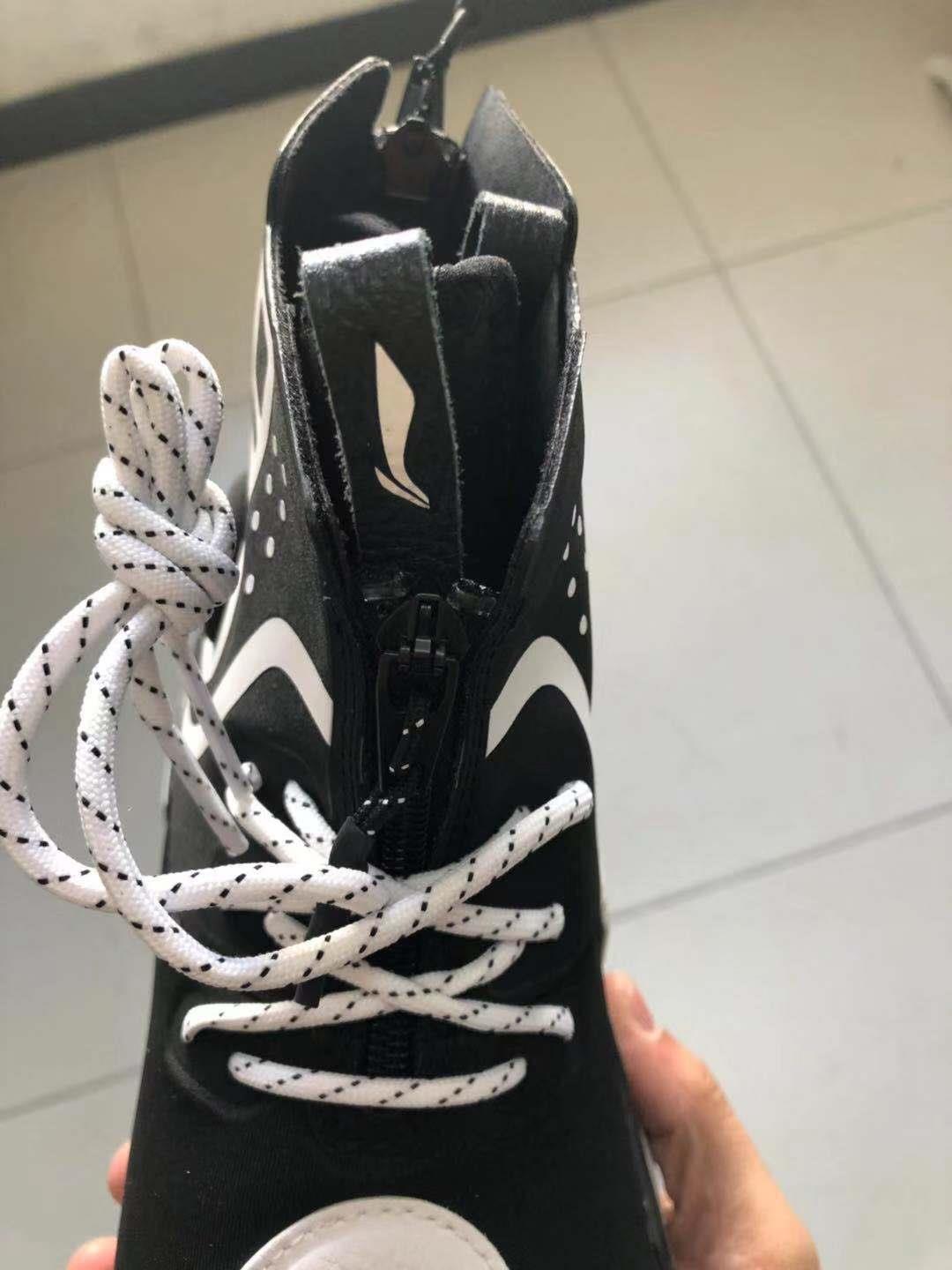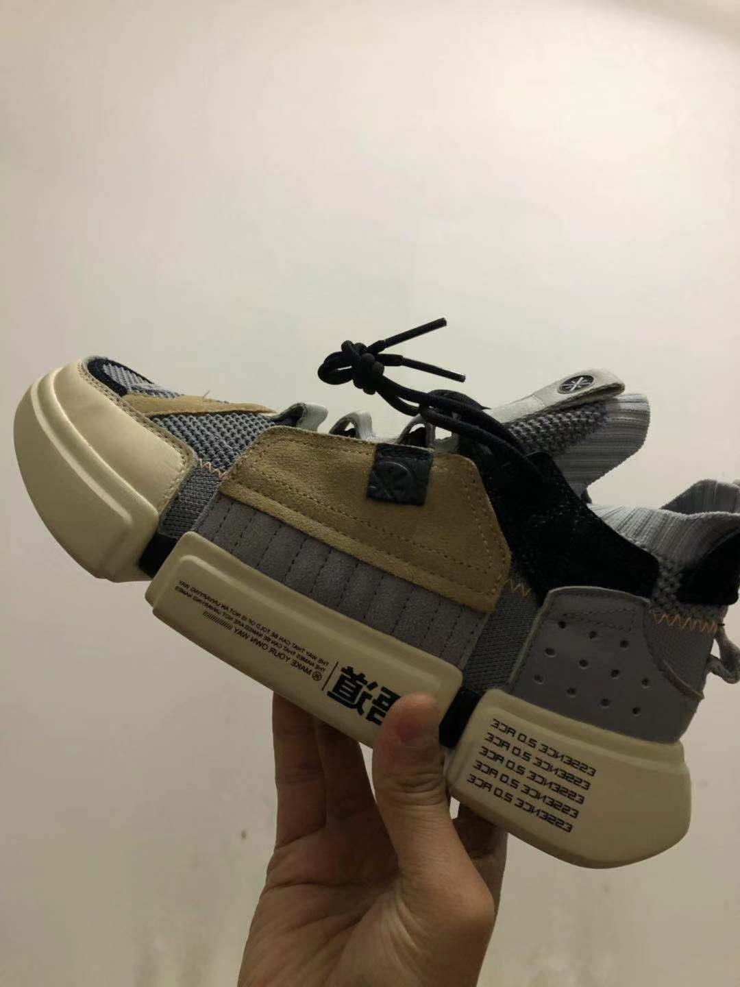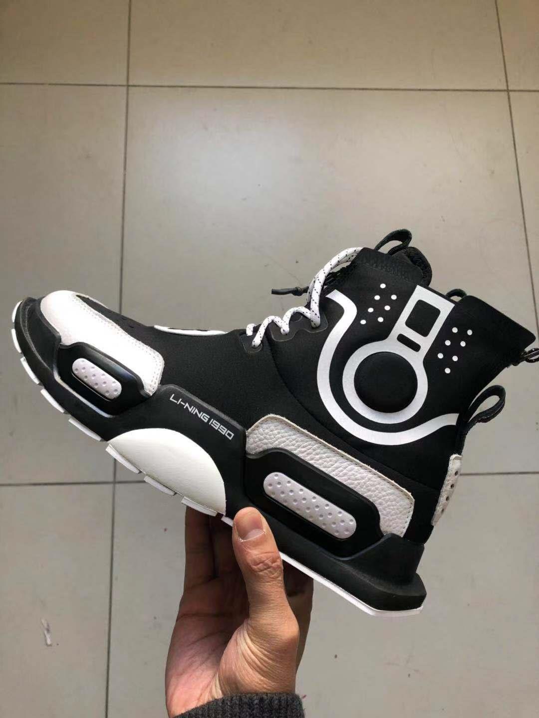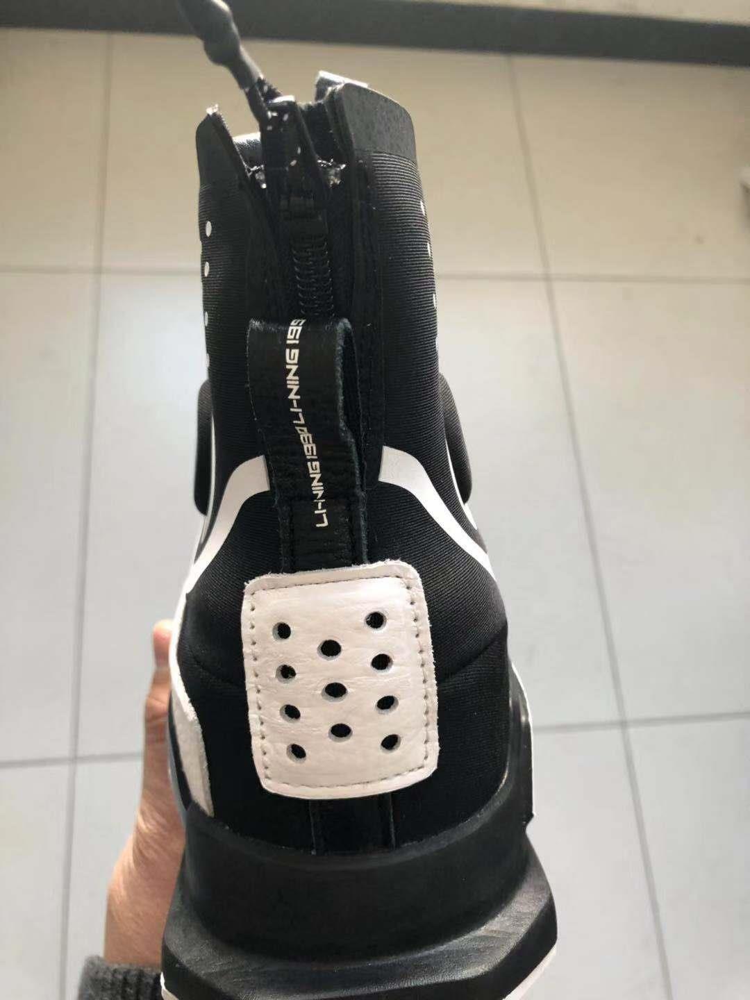 重燃的白色黑斑点鞋带也与鞋身颜色呼应,鞋子没有鞋舌,而是一条印有李宁logo的拉链