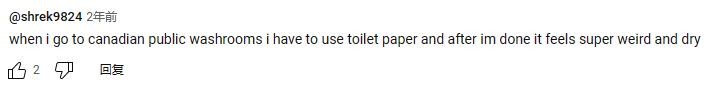 shrek9824:我在加拿大的公共卫生间,我没办法只能使卫生纸,用完后感觉又奇怪又干。
