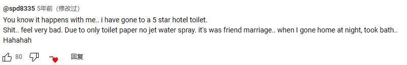 rulan7452:第一次到他们说只用卫生纸时候,我脑子里浮现出这样一个问题:“他们不觉得痒吗?他们的屁股不臭吗?”。如果我不用肥皂手动清洗,我甚至感觉不到我上完厕所了。