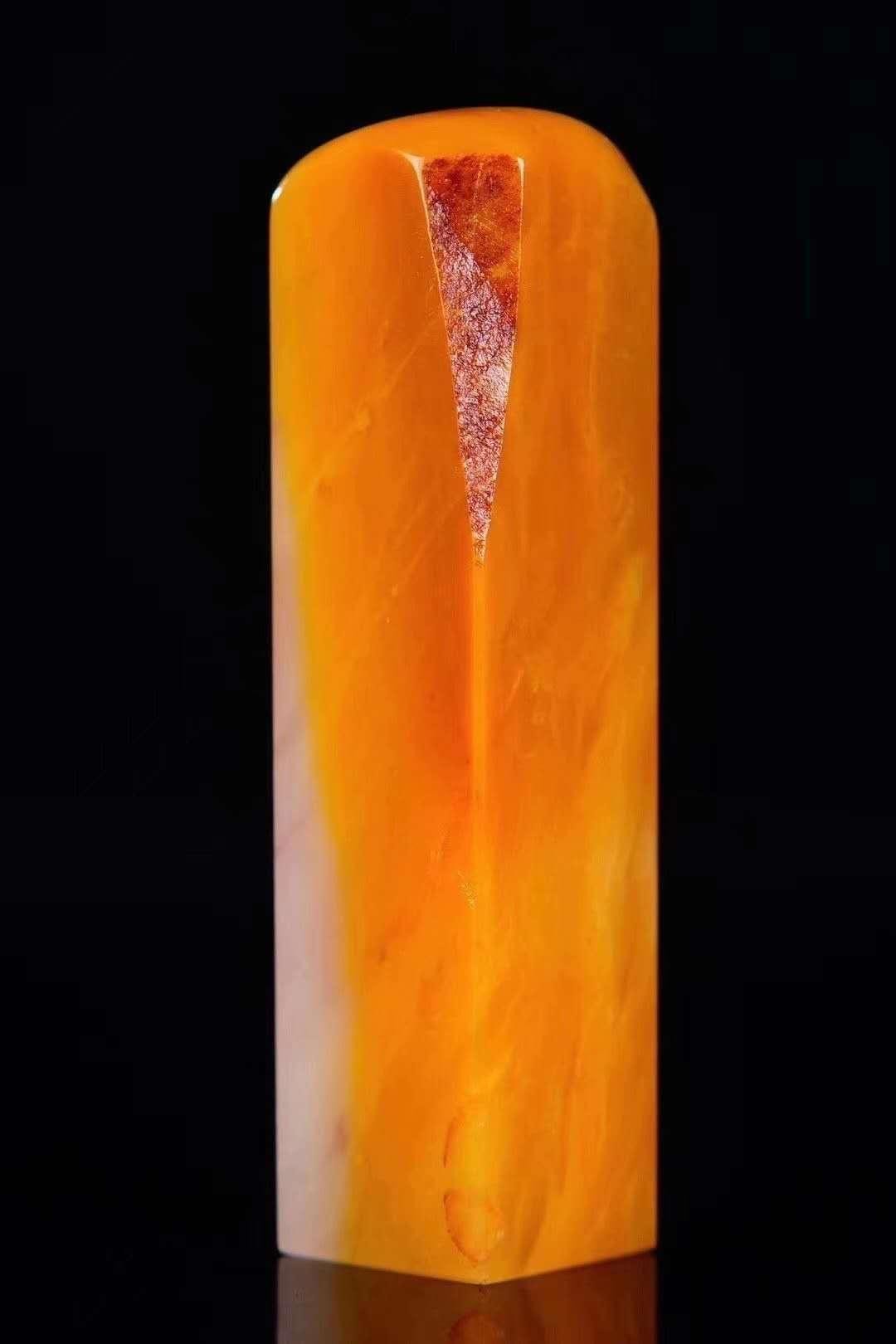 老挝田黄石极其类似于寿山石当中的掘性独石,田黄石就是寿山石中的掘性独石滚落田间经过亿万年形成的,掘性独石的特点就是蜡性强,光水好,性稳定,老结,带皮,温润等。