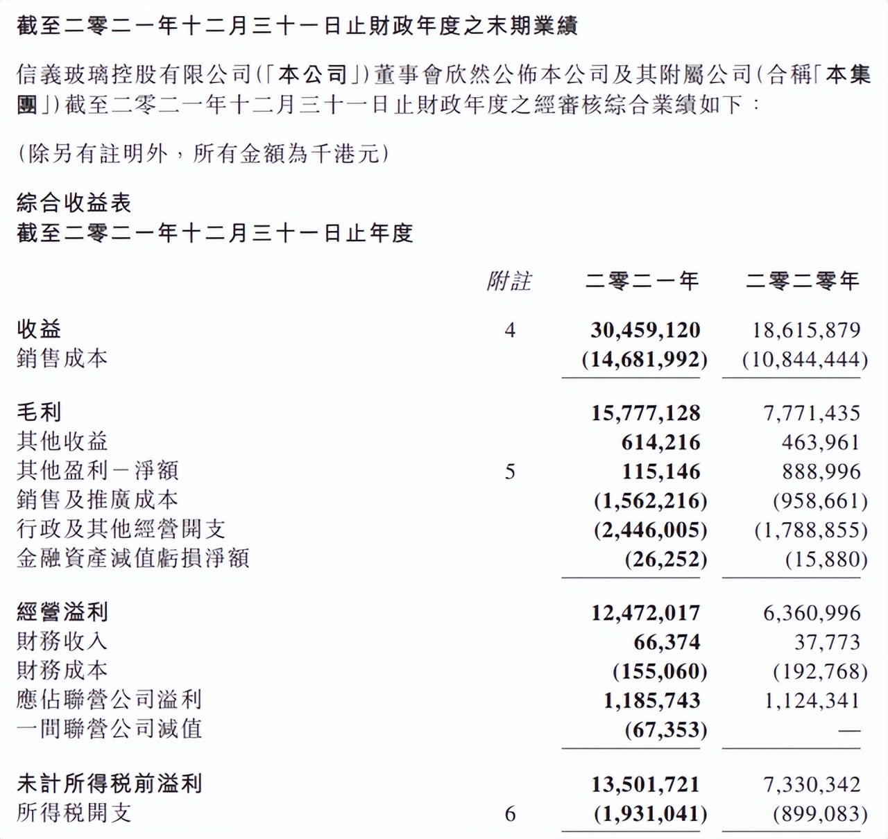 不过,随着中国另一玻璃制造企业信义玻璃的业绩披露,媒体们用“玻璃大王换人了”这样的字眼来描述这样一个事实——信义玻璃2021年营收达到304亿港元(约合246亿人民币),净利润达到115亿港元(约合93亿人民币),这是信义玻璃自2005年上市以来,业绩首次超越福耀玻璃。
