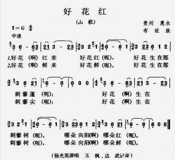 《好花红》这首歌可以算得上是布依民歌的经典之作了,简单好记的歌词加上欢快灵动的曲调,深受布依族人民的喜爱。