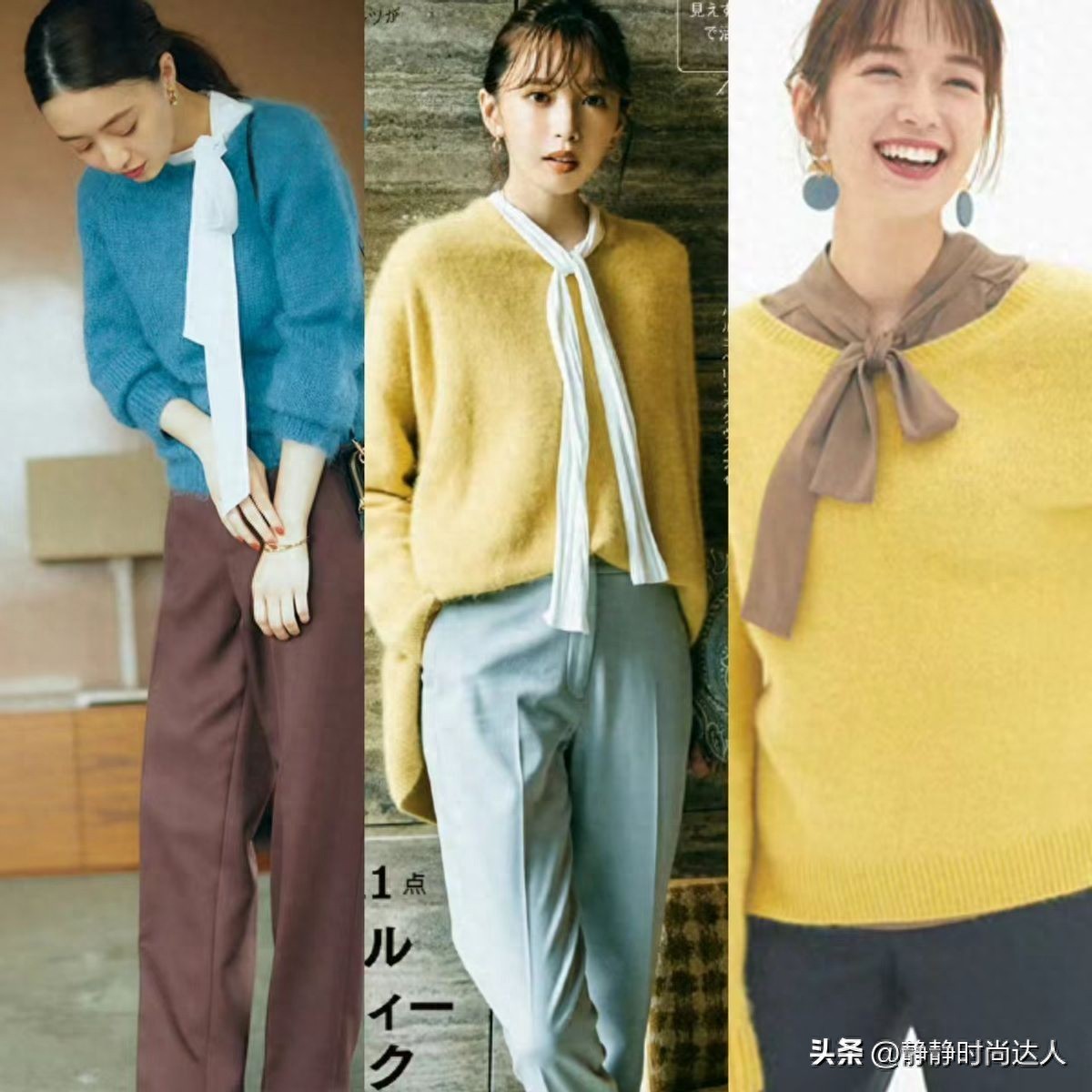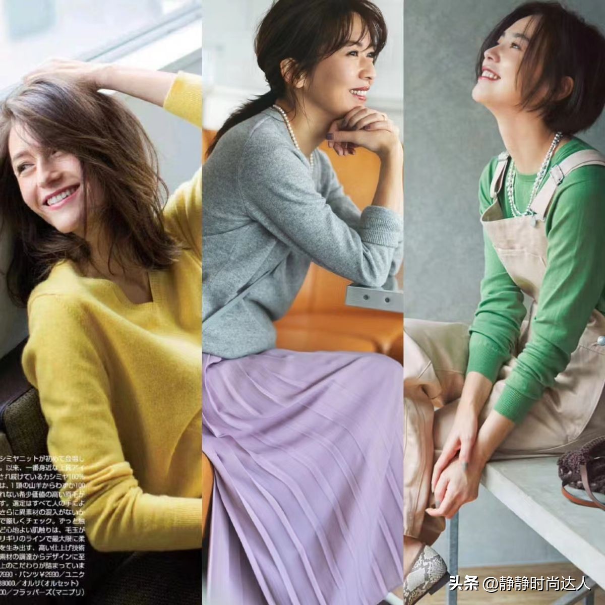 黄色是明媚的象征,当然,还可以试一试绿色的针织衫,这种单品也会营造一种活力四射的风采,带来减龄的效果。如果不喜欢穿彩色上衣,可以换成彩色裙装,驾驭难度更低一些。