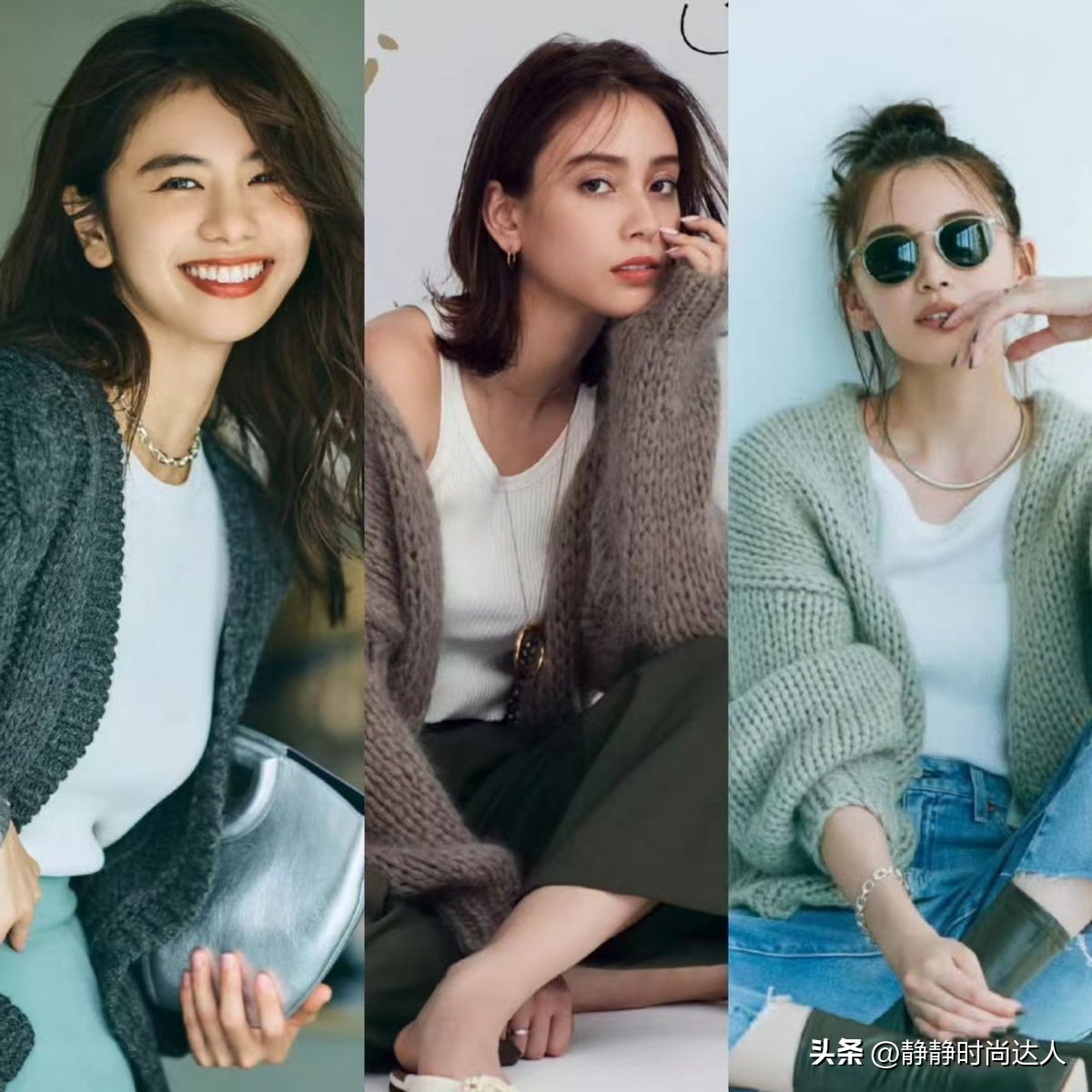 用这种清新的颜色,带来一些清爽的视觉效果,而开衫的样式可以宽松一些,在里面加入T恤或背心,都可以保证舒适感得以体现。下面这几套针织衫穿搭,就适合在秋季采用,整组造型不拖沓又很简单易学。