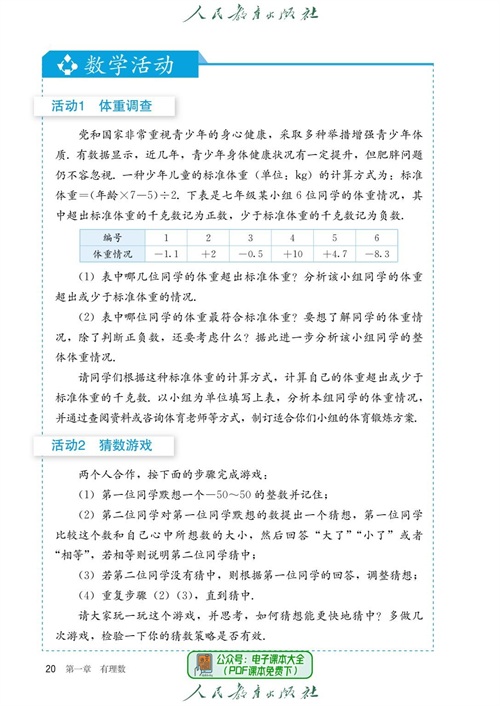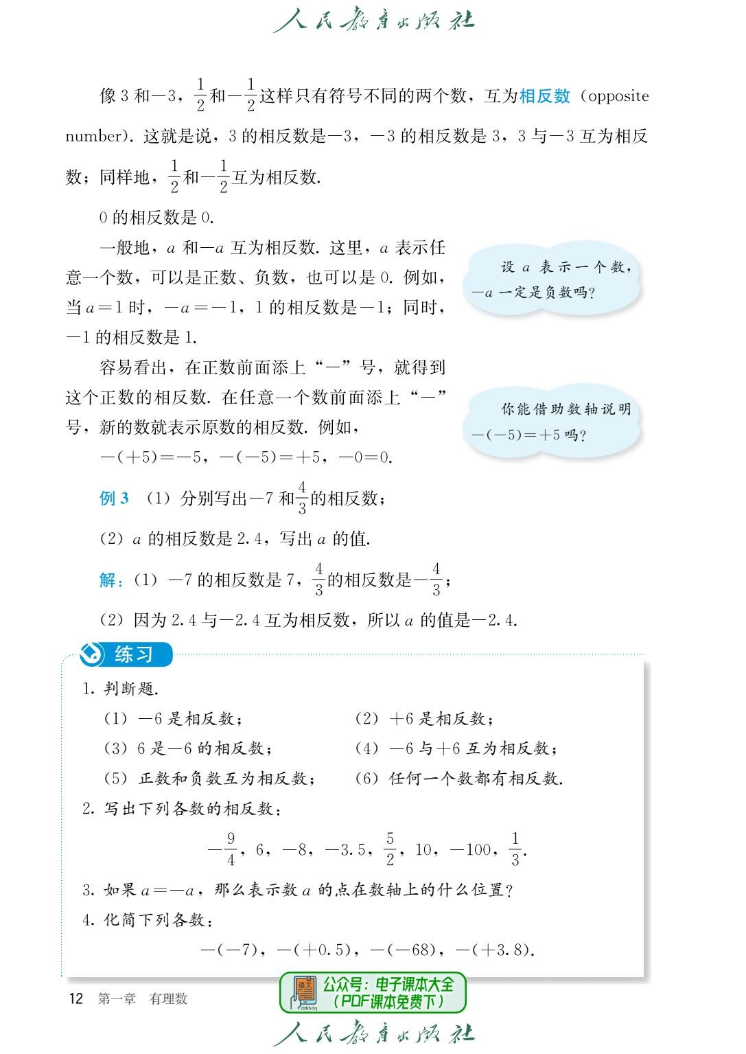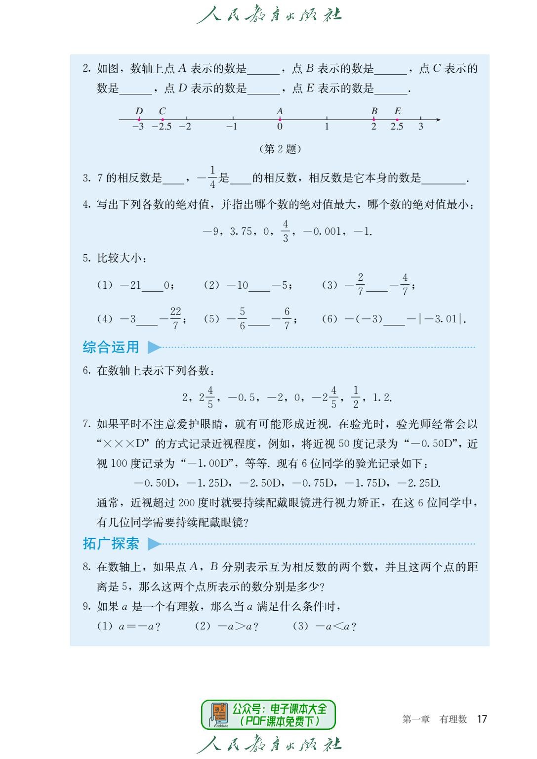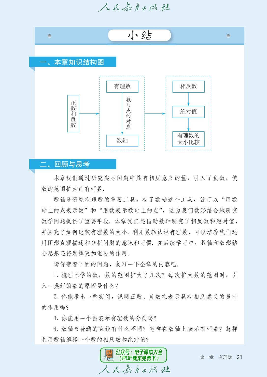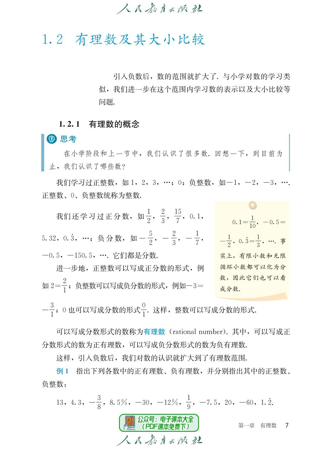 2024秋季最新正式版初中数学七年级上册电子课本PDF高清版教科书