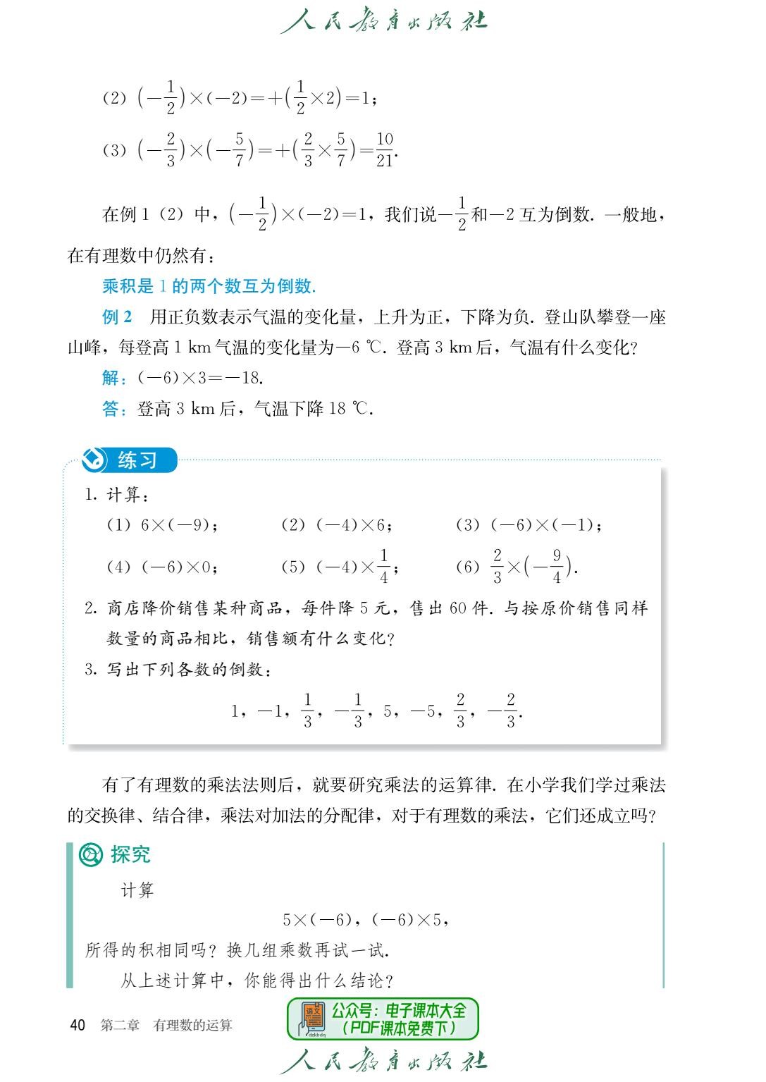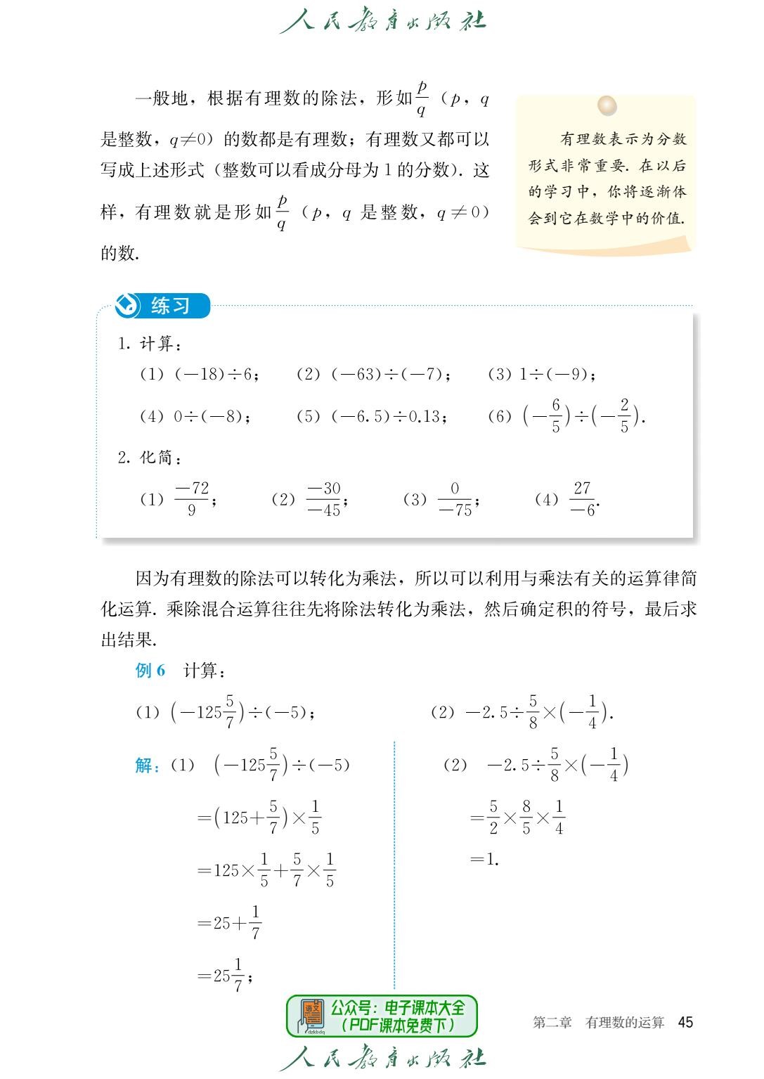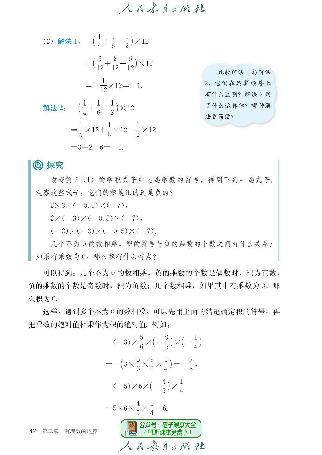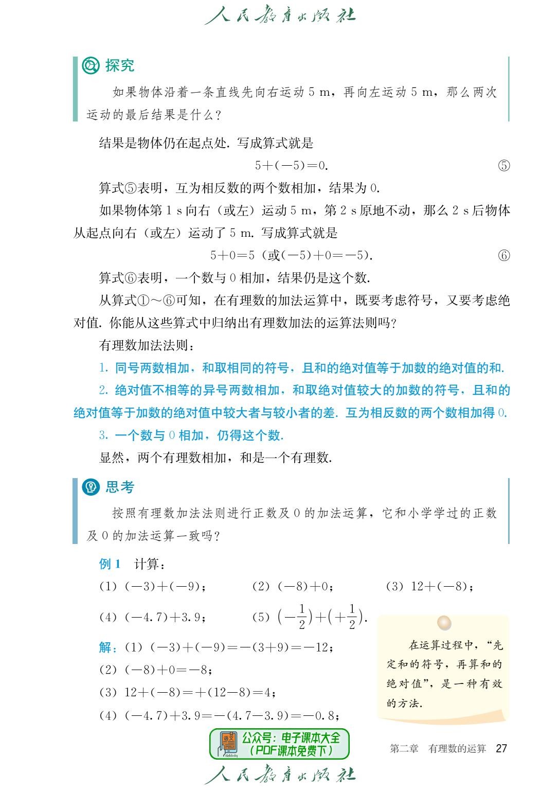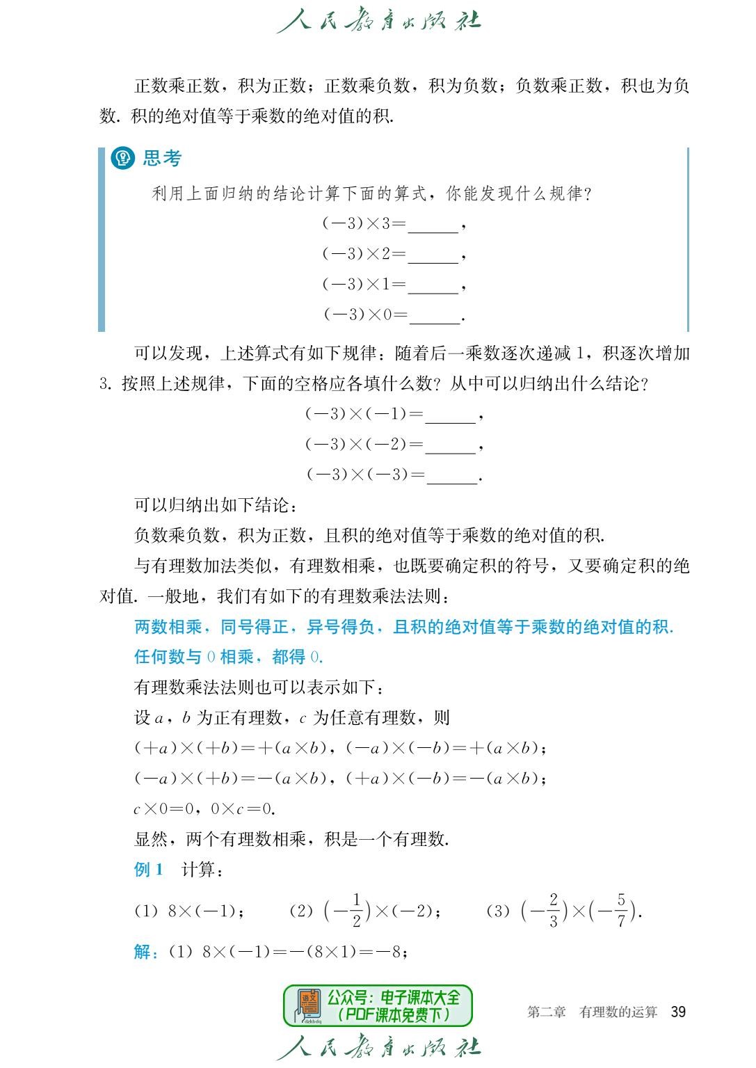 2024秋季最新正式版初中数学七年级上册电子课本PDF高清版教科书