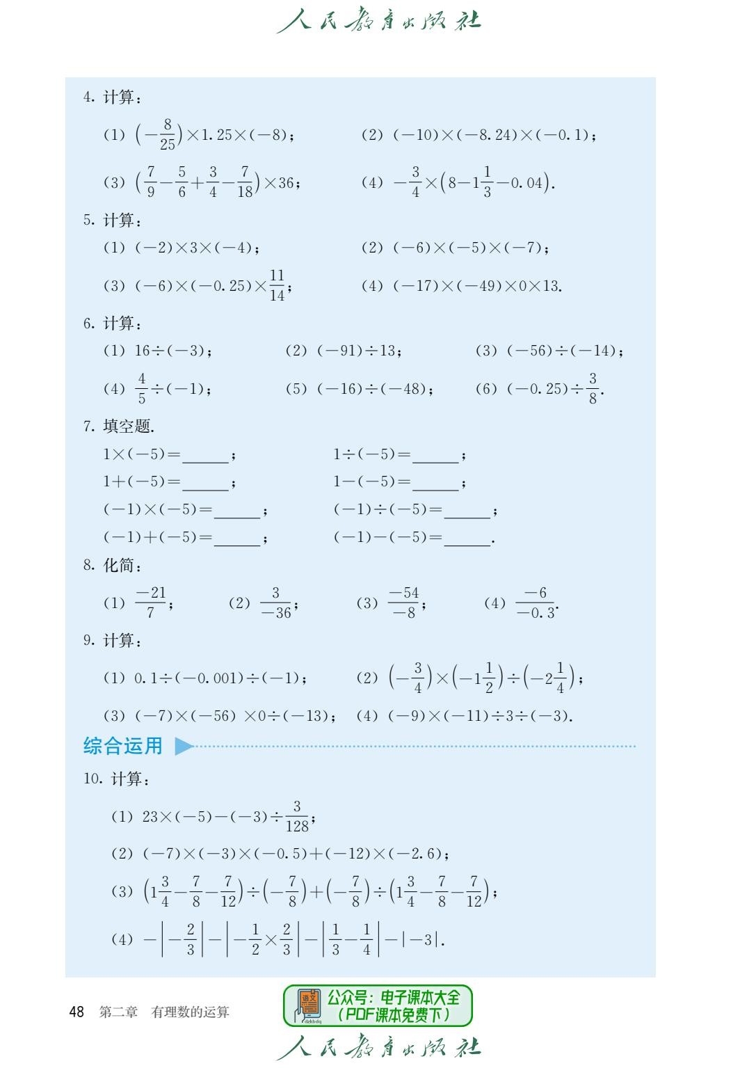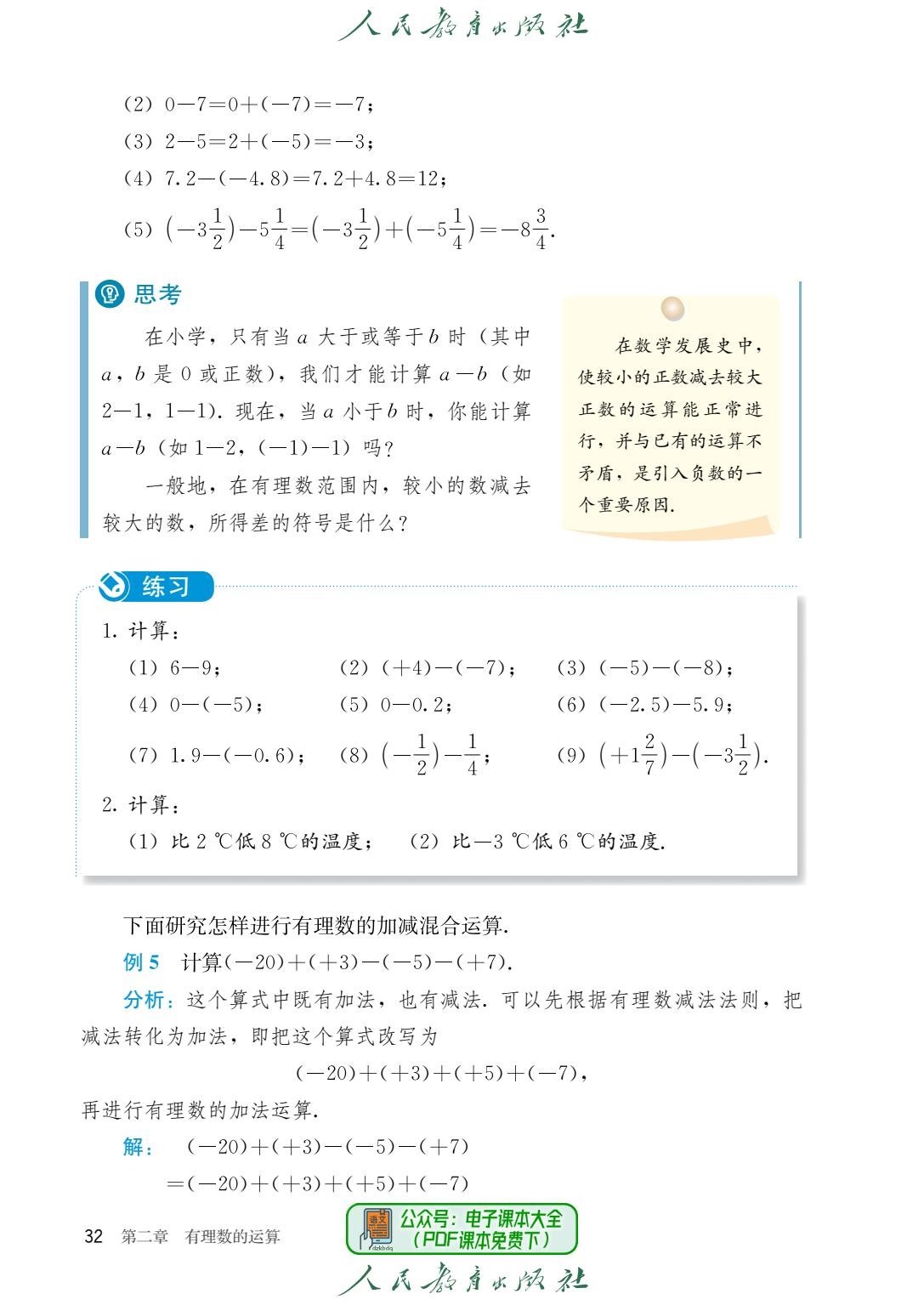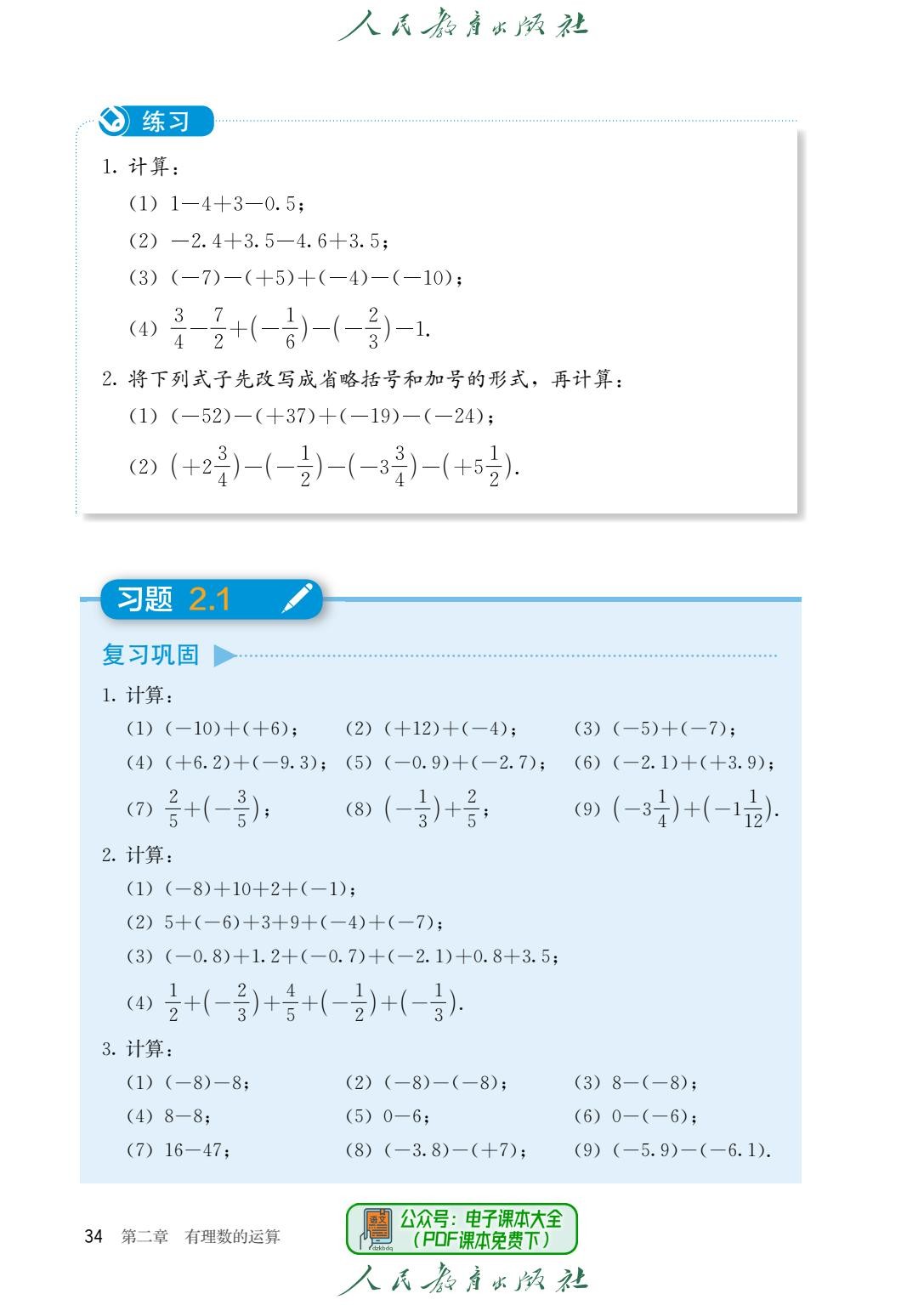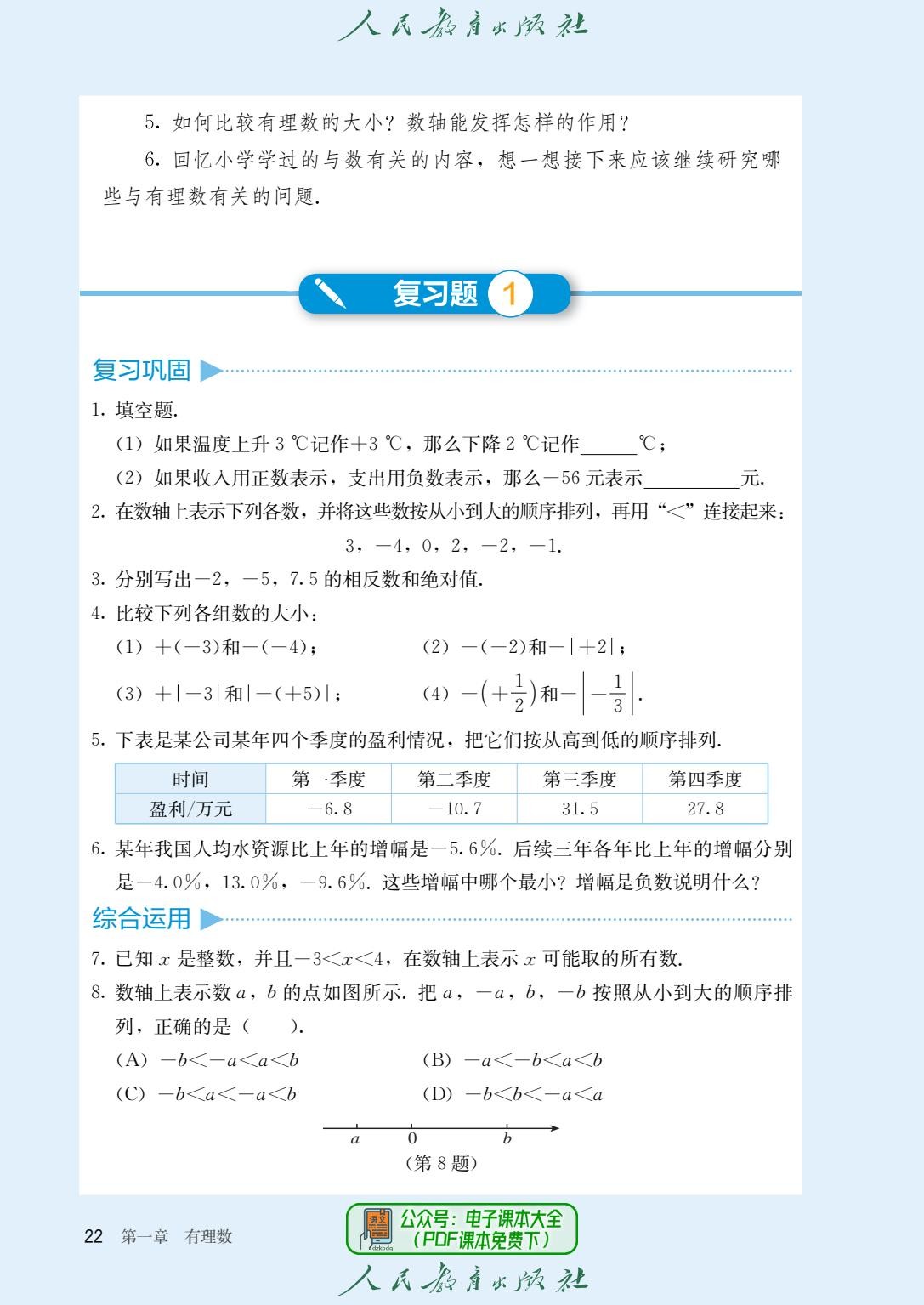 2024秋季最新正式版初中数学七年级上册电子课本PDF高清版教科书