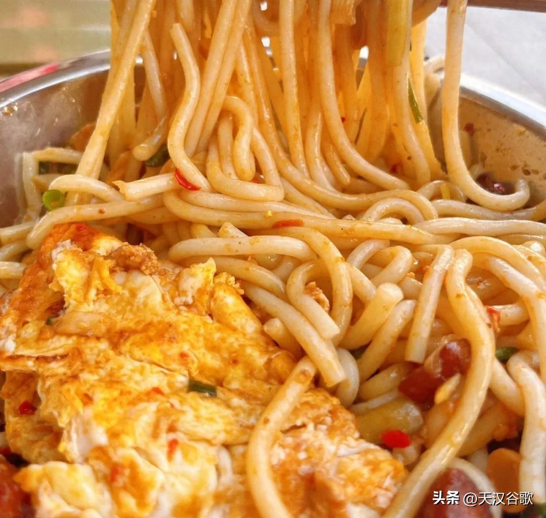 面条色泽黄而油润,味道鲜美。热干面店随处可见,价格实惠,是武汉人过早必不可少的美食,吃起来那叫一个香。