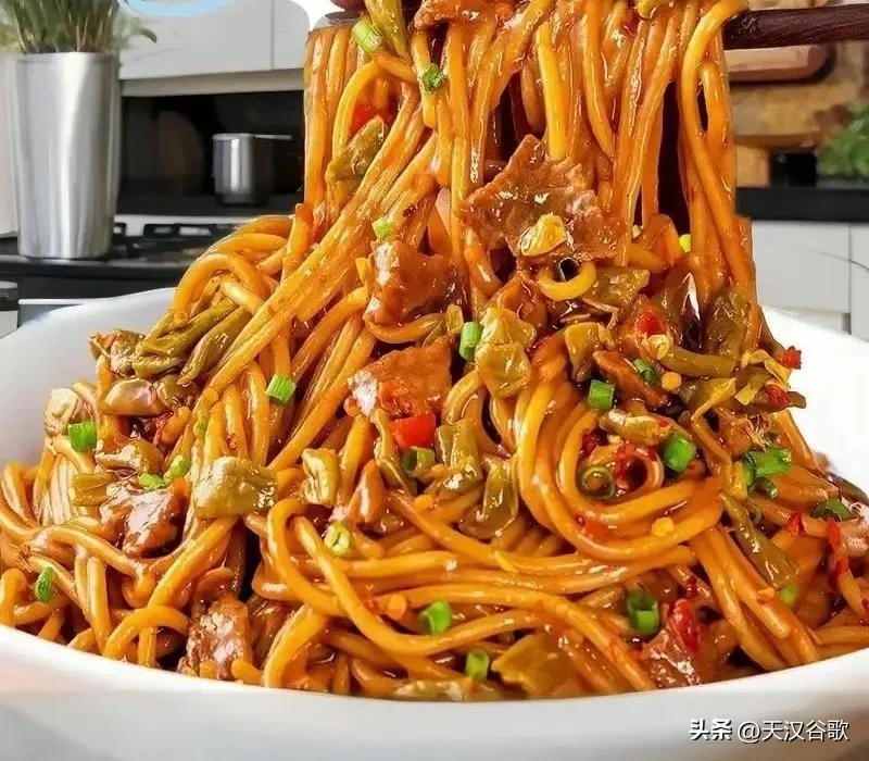 武汉热干面是武汉人的骄傲。碱水面煮熟后沥干水分,拌上浓香的芝麻酱、葱花、蒜末、萝卜干、酸豆角等调料