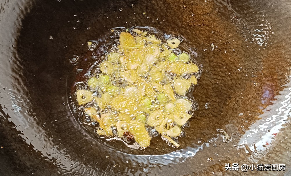 【步骤四】:锅中放入一勺油烧热,放入葱姜蒜,小火炒出香味。