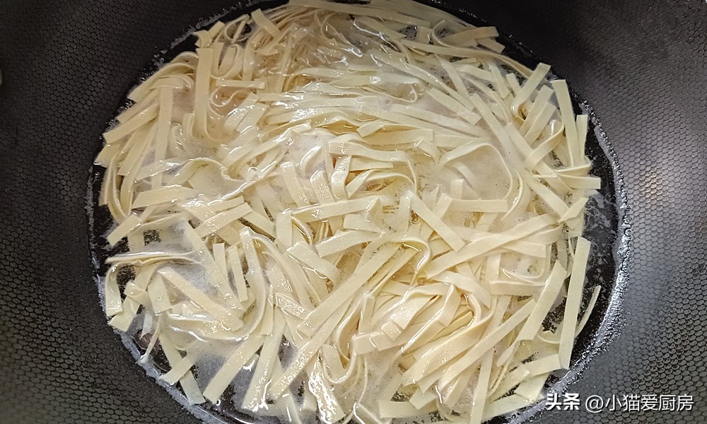 (3)干豆腐焯水的时候放入一勺小苏打,小苏打能让干豆腐口感变得细腻滑嫩。