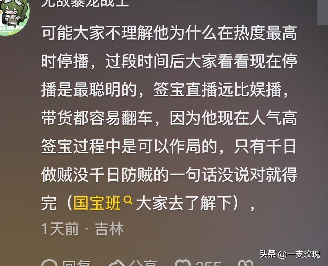 听泉鉴宝的停播,原因是30天涨粉千万,热度越来越高。于是乎,他给自己整了一卦,然后“避其锋芒”去了!本以为随着自己直播的停掉,听泉的热度会逐渐下降。