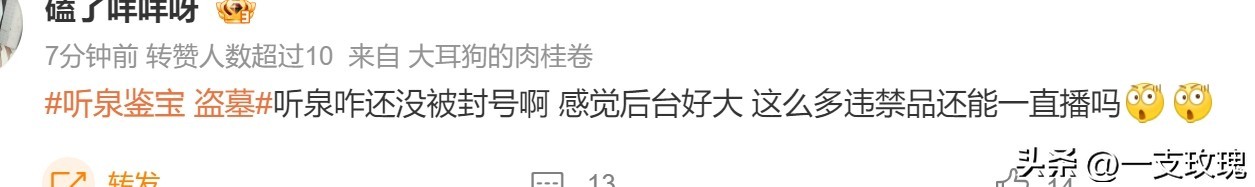 毕竟听泉本人也说,自己只会停播一个星期。但是随着“听泉鉴宝 盗墓”的又一次登上热搜,却引起了不少观众粉丝的担忧:怎么又上热搜了?这是有心之人买上的热搜吗?听泉还能复播吗?会不会被封啊?