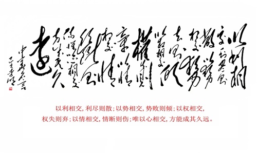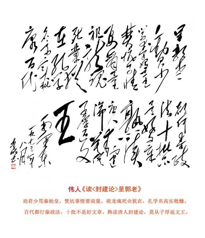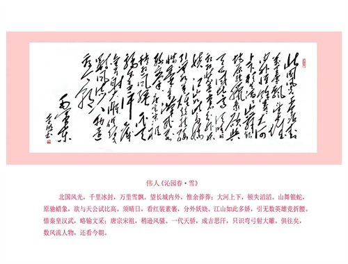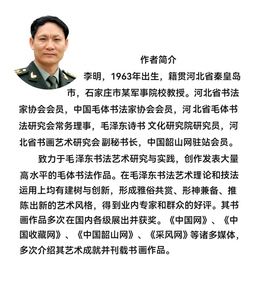 毛体书法是一种创造性的艺术。临摹是练习过程,而不是学习的目的。继承基础上的创新才是书家正道。 一一李明