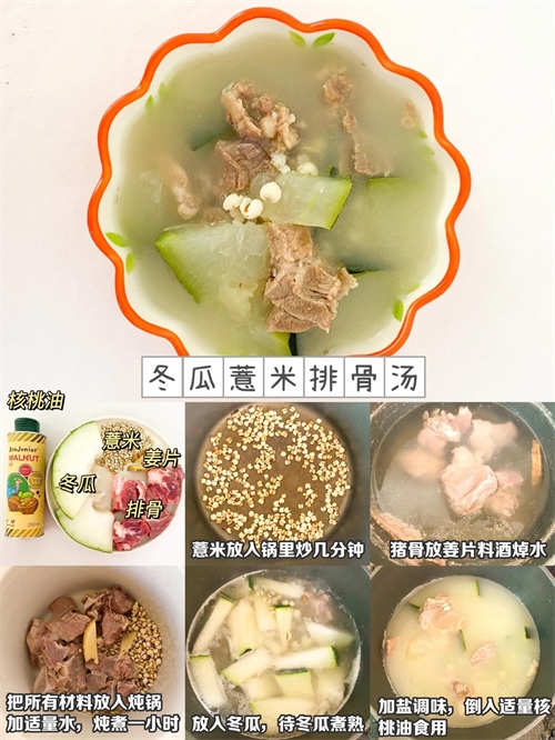 准备材料:核桃油 排骨 冬瓜 薏米 姜片