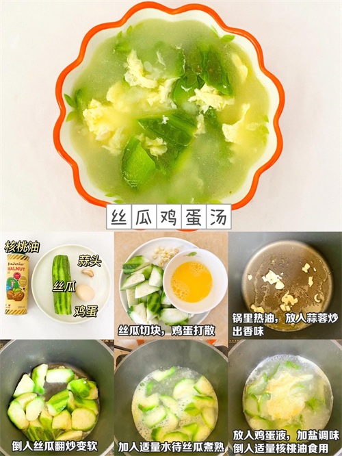准备材料:核桃油 丝瓜 鸡蛋 蒜